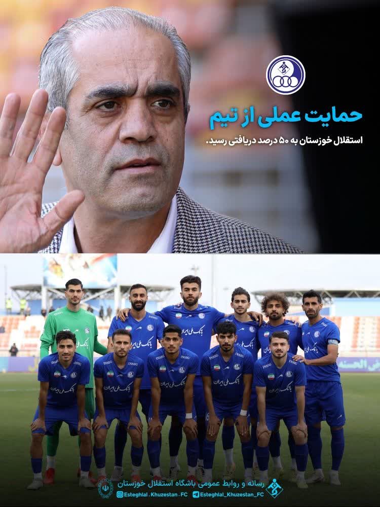 به گزارش رسانه رسمی باشگاه استقلال خوزستان، امروز با پیگیری های ثمر بهنام ابوالقاسم پور مدیرعامل باشگاه و پشتیبانی گروه ملی صنعتی فولاد ایران و بانک ملی ایران، ۱۰ درصد دیگر از مطالبات بازیکنان و کادر فنی را پرداخت شد.